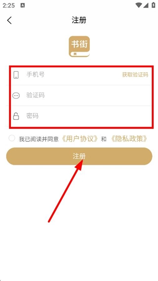 4、填写手机号、验证码与密码,点击注册按钮,即可完成注册流程。