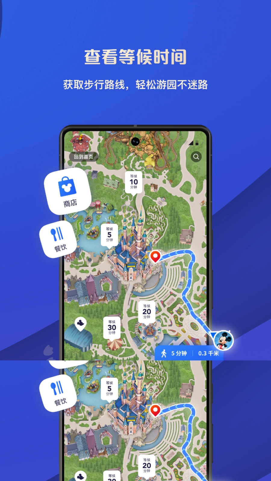 3、配备园区地图导航功能,可精准标注景点、餐厅、卫生间等场所的具体位置,并能为游客规划出最优的步行路线。