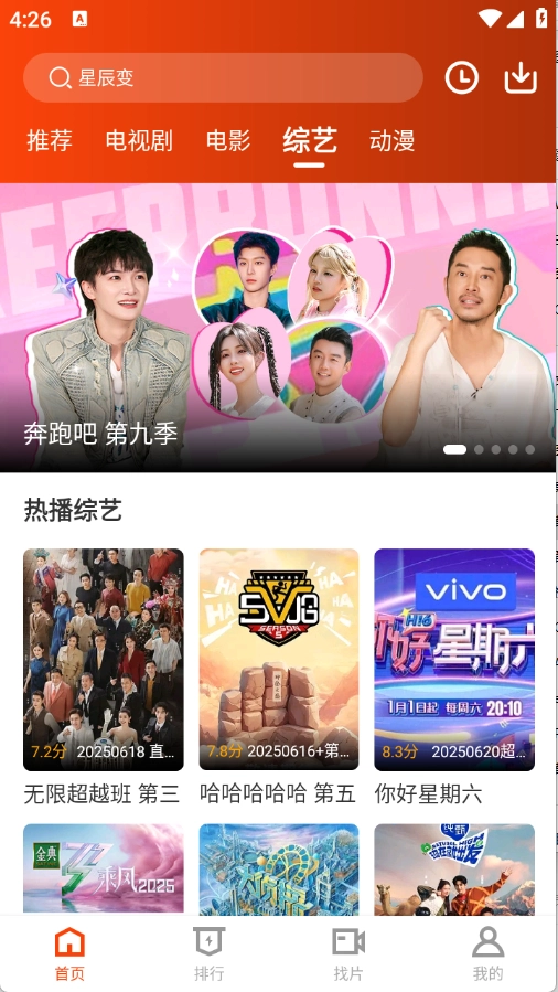 首页顶部栏汇集了丰富的影视资源,涵盖电视剧、电影、综艺等多种类型。