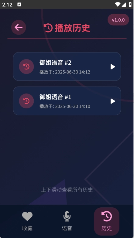 黯笙喜欢听御姐撒娇,这里有不少御姐撒娇的语音包,点击按钮就能直接播放,也能切换到下一个音频继续听。而且所有功能都是免费的,还能查看播放历史,让用户随时都能沉浸在御姐的声音里。