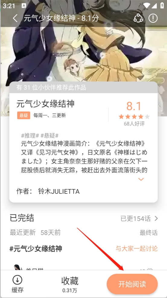 1、用户打开喜欢的漫画进入详情页。