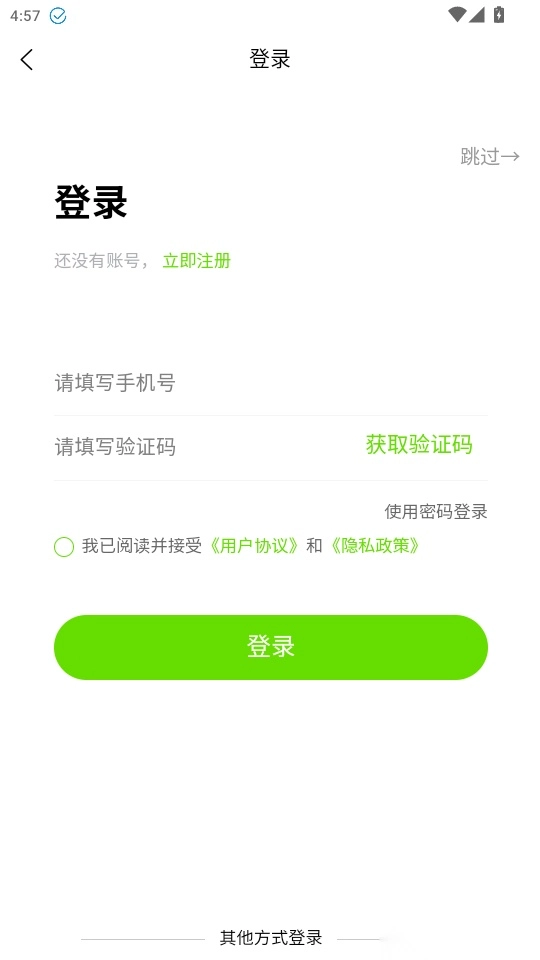 2. 输入手机号码和验证码后,点击“登录”按钮就能马上登录使用了。