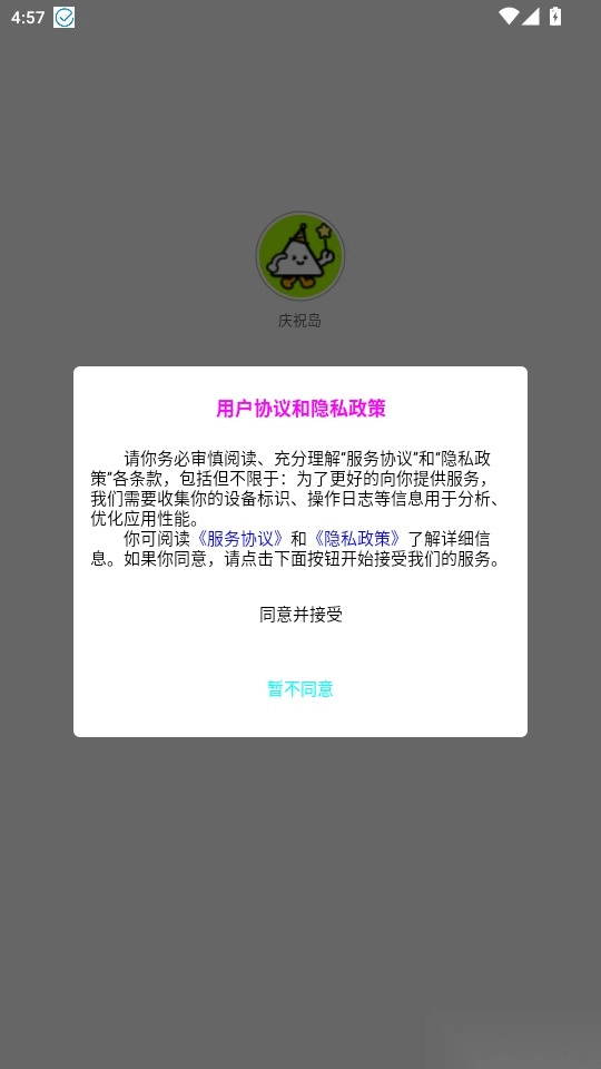 1. 启动软件后阅读“用户协议和隐私政策”,点击“同意并接受”按钮进入应用