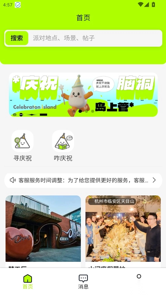 在寻庆祝功能里,你能够查找适合举办庆祝活动的营地场所,找到心仪的营地场地。