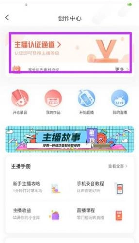 3、进入创作中心后,在页面中找到主播认证通道并进入该通道。