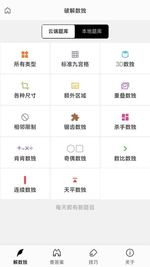 数独是一款能帮用户轻松获取各类数独答案的软件,它具备十分智能的模式,只要上传数独照片,就能快速为用户解题,让你得到数独的答案和解析,助力众多数独爱好者积累更多数独知识。这款数独软件还为用户准备了丰富的技巧教程与题库,你可以在平台上跟着教程学习,不断提升数独水平,轻松应对各种数独难题;也能在平台练习各类数独题库,提高解题能力。喜欢数独的用户可别错过,还有更多内容等你探索!