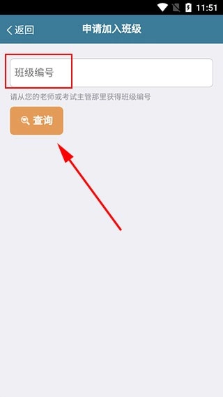 2、接着输入想要加入班级的“班级编号”,再点击“查询”按钮;