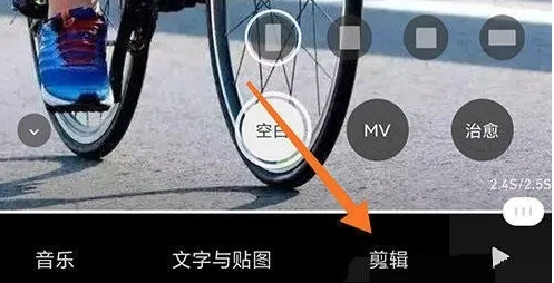 2.打开音乐导入后选择剪辑,即可对音乐进行剪辑。