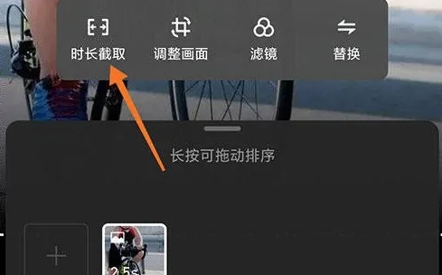 4、按照需求截取相应时长的内容,若需要延长视频时长,只需将视频向右拖动,直至达到理想的时间点就行。