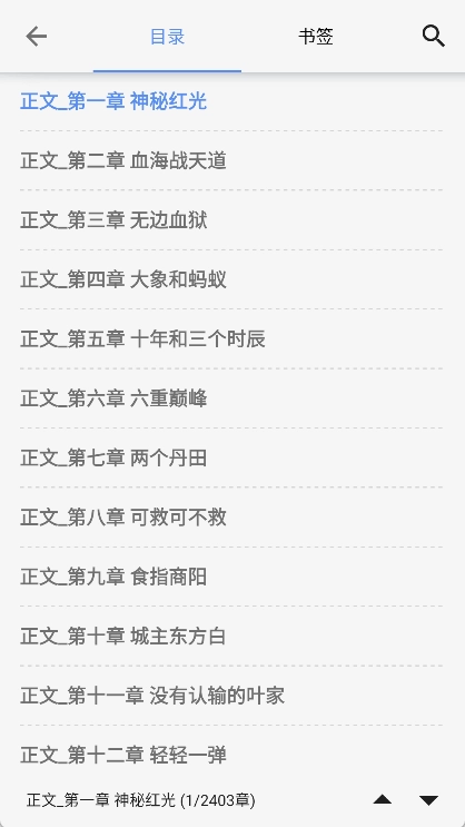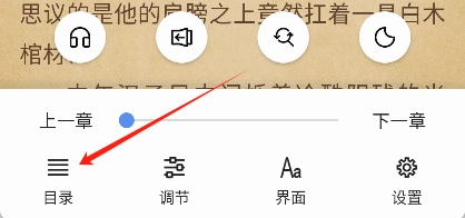 进入阅读界面后,轻点中间的空白区域,接着选择“目录”选项,就能查看这本小说的章节目录了。