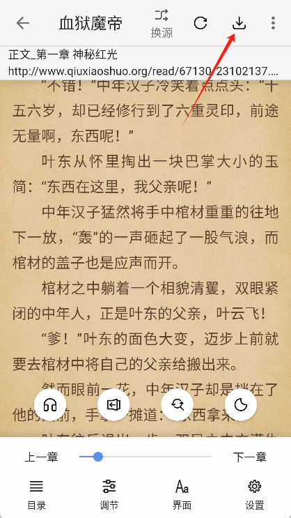 5、也支持点击右上角的按钮,将小说保存到自己的设备中。