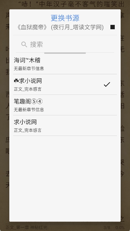 6、同时支持多个书源,若当前书源无法加载小说,可尝试切换其他书源。