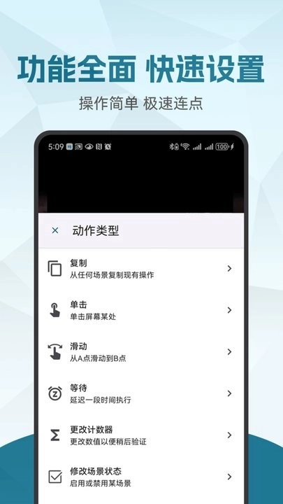 动作模拟方面,除了基础的点击操作外,还可实现从A点到B点的滑动等手势动作的模拟,以此拓展自动化操作的种类。