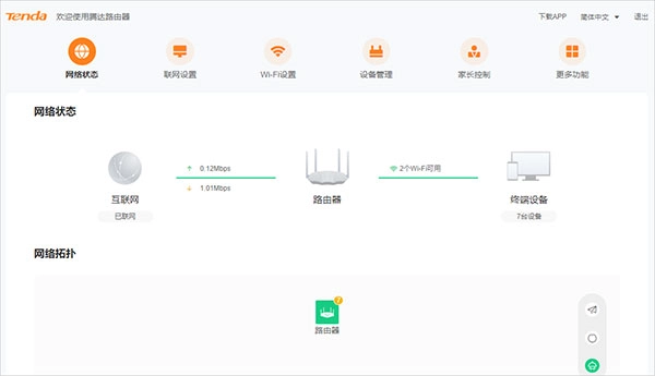 宽带网络运行正常时,可在已接入路由器的手机或电脑上,登录tendawifi.com进入路由器管理界面,查看路由器所配置的上网方式是否准确无误,同时确认路由器的网络连接状态。