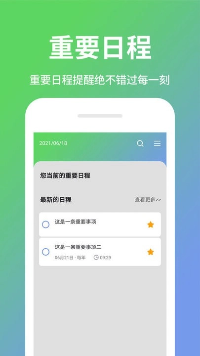 可以不再为错过日程计划而担忧,能和系统自带的日程管理功能无缝衔接,还具备云端备份能力,确保更换设备后日程资料依然完整同步。记录任务清单简单又方便,只要编辑好名称、内容,再设置好提醒时间就行。