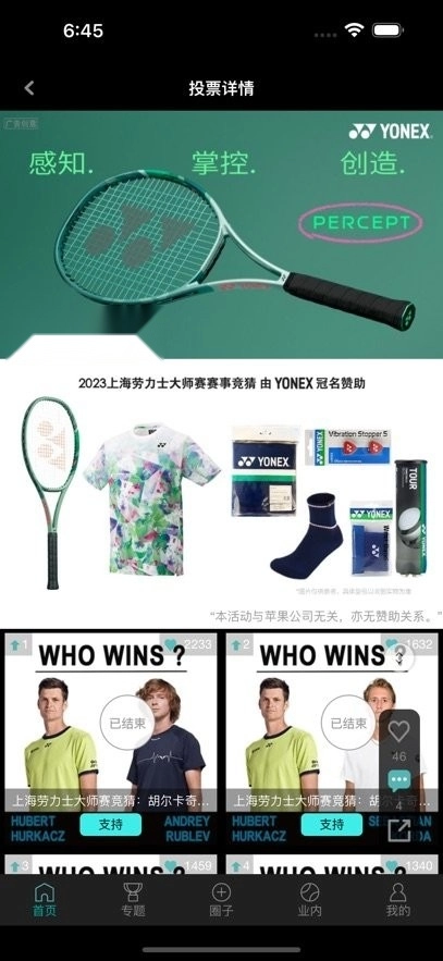 1、我们还能借助“圈子”功能和志同道合的网球爱好者展开热烈互动,进行吐槽、点赞与圈粉等操作。
