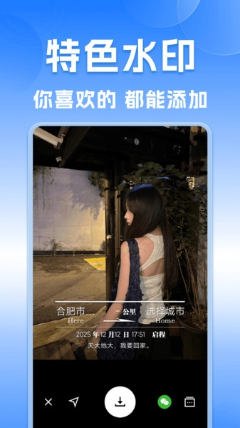 3、一键分享功能:可将添加水印后的照片或视频便捷分享到主流社交平台,助力用户快速分享个人记录与成果,优化使用体验。