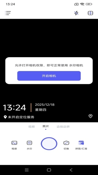 1、一键水印拍照:选定水印样式后,只需一键按下快门,系统便会自动生成带有水印的照片;水印的大小、角度、摆放位置以及透明度等参数,都支持一键快速调节,整个操作流程简单易上手,让您轻松省心、高效省力。