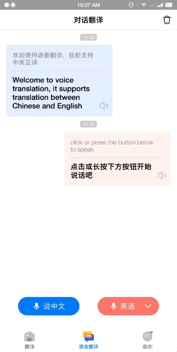 3、除了语音与文字翻译功能外,这款应用还具备实时语音识别和语音合成的能力,能够把输入的语音迅速转换成文字形式或者直接以语音方式输出。