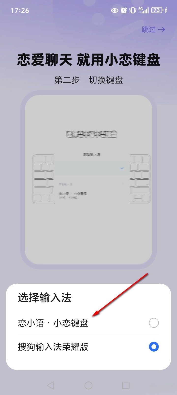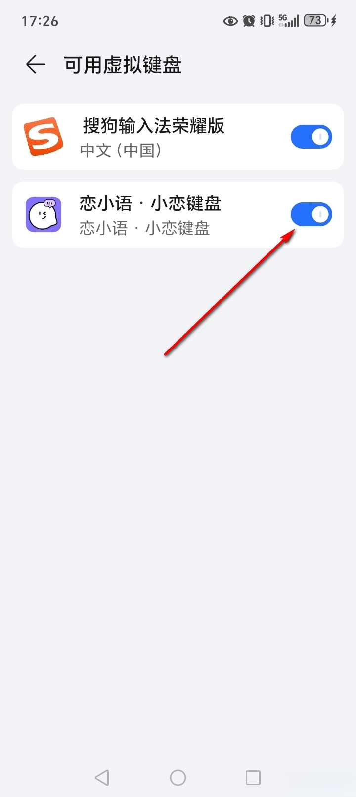 选择【恋小语小恋键盘】就能把输入法切换成恋小语输入法