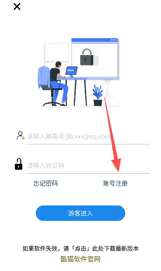 1、打开酷猫软件,按提示注册登录,无需验证。