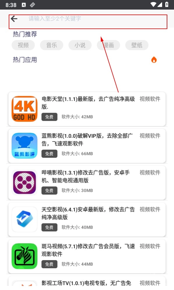 2、主界面有资源分类和推荐,也可搜索关键词。