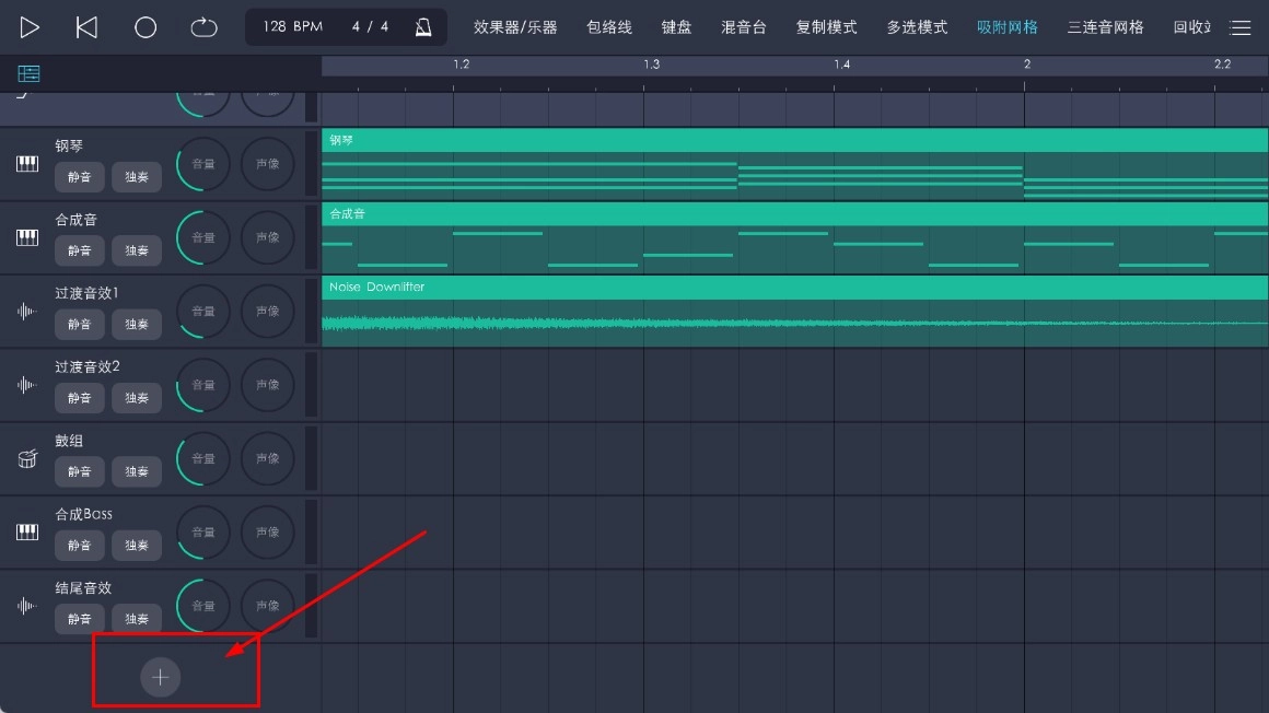 1、点击左下角的【添加功能按钮】,即可弹出新建音轨的选项。