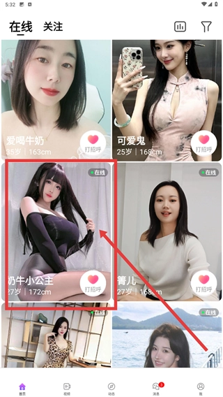 1、在用户列表中找到类似【奶牛小公主】这样的卡片,点击该卡片即可进入对应的用户主页,不仅能查看其基本信息,还可以发起互动。