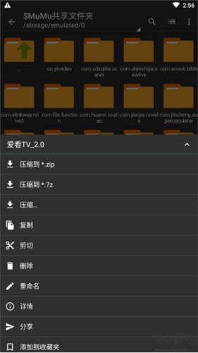 长按文件夹即可调出操作菜单,进而执行压缩、复制、剪切、删除等操作。