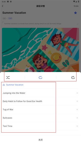2、在分级页面找到目标课程(例如【SummerVacation】),点击进入该课程的详情学习界面。