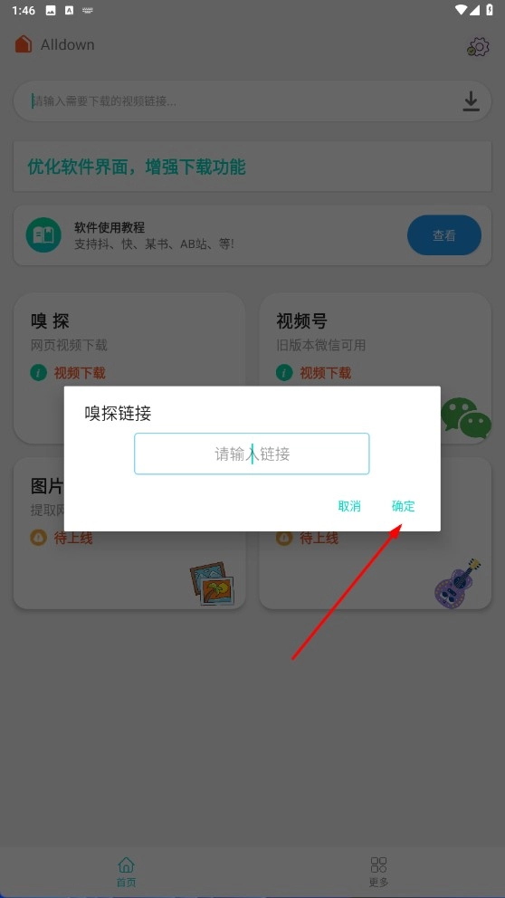 2、在【嗅探链接输入框】中填入链接,点击【确定按钮】即可启动嗅探流程。
