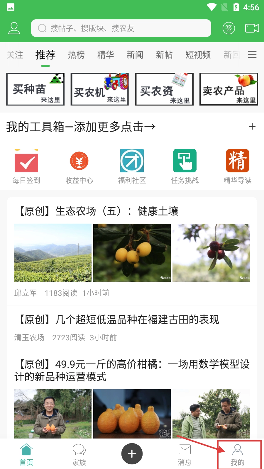 1、打开该农业类平台首页后,点击页面右下角的【我的】按钮,即可进入个人中心页面。