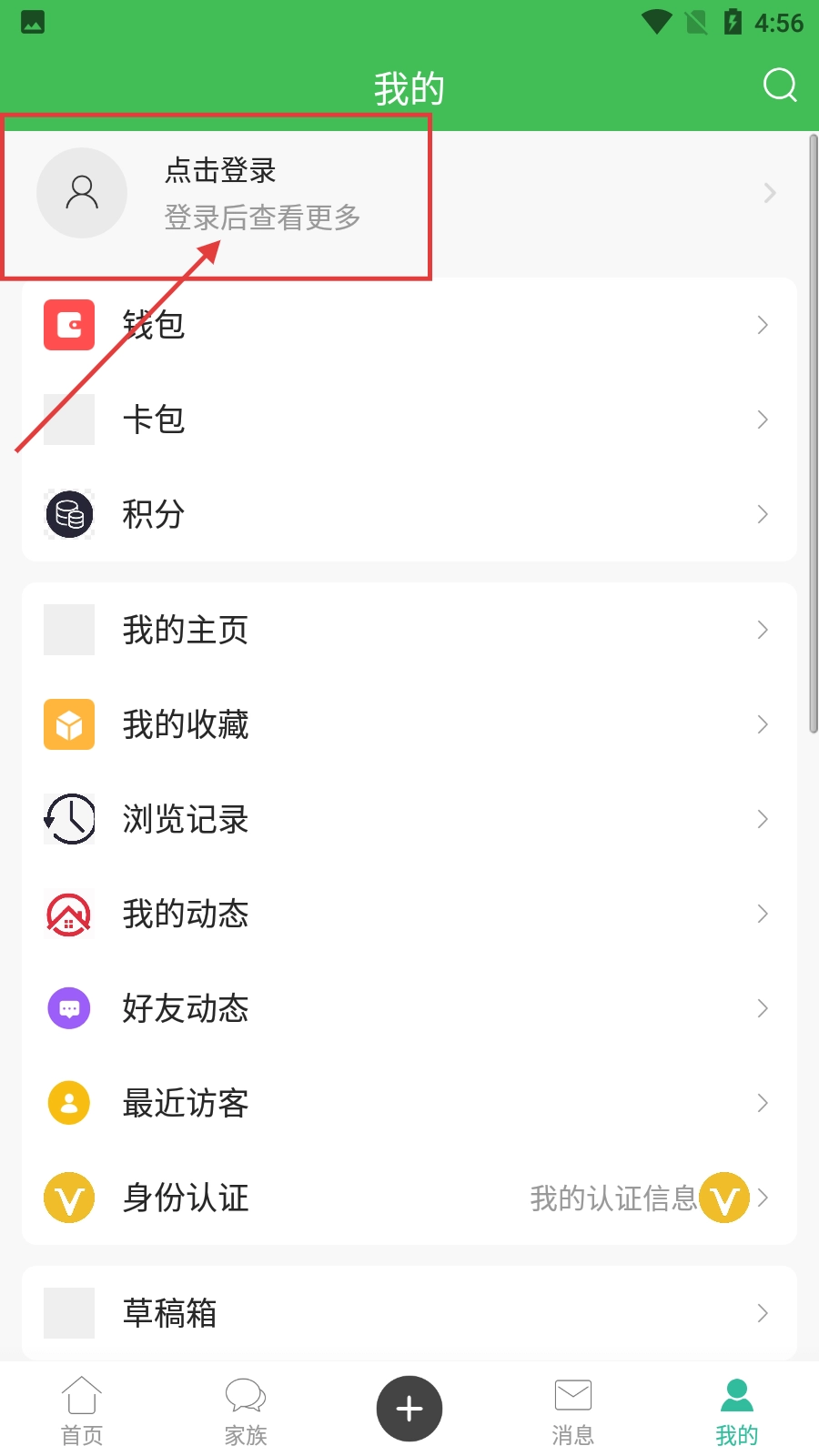 2、在【我的】页面,点击【点击登录】按钮,即可进入登录界面。