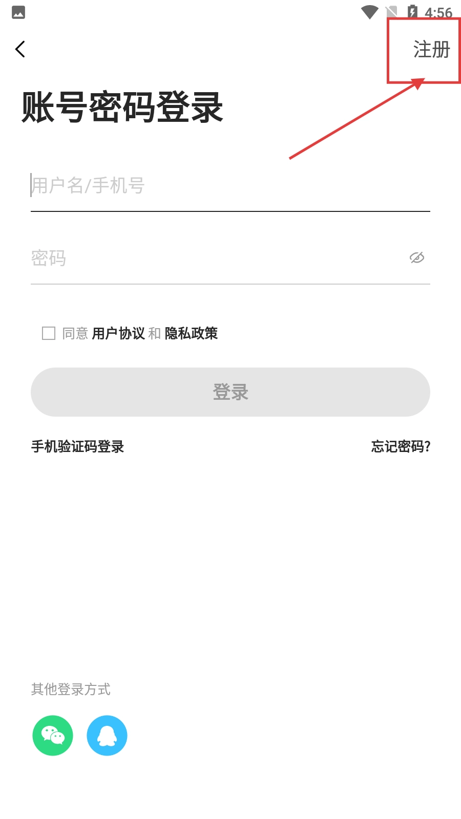 3、在登录界面,点击右上角的【注册】按钮,即可进入注册页面。