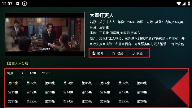 5、点击影视详情页,查看简介、选集,并支持换源。