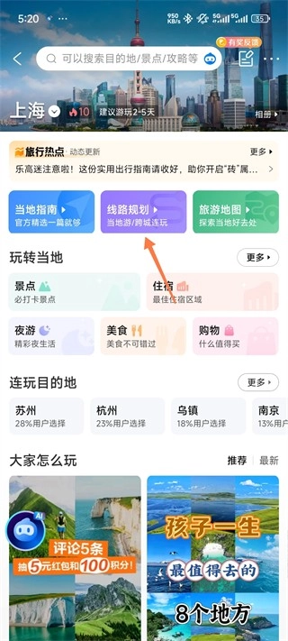 3、要是想出去玩却没有路线,不妨点击【攻略/景点】板块。