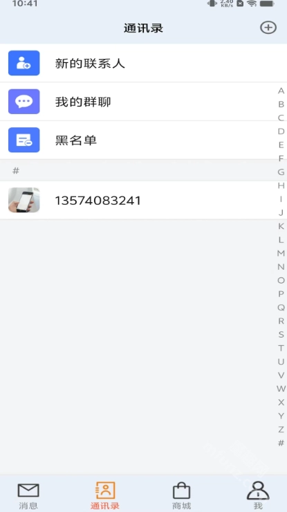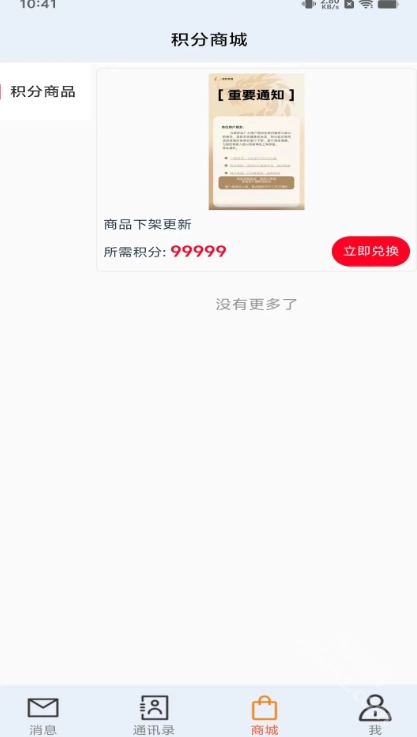 登录后,能看到主要包含消息、通讯录、商城和“我”这几大模块,需要使用哪个功能直接点击对应的模块就行。