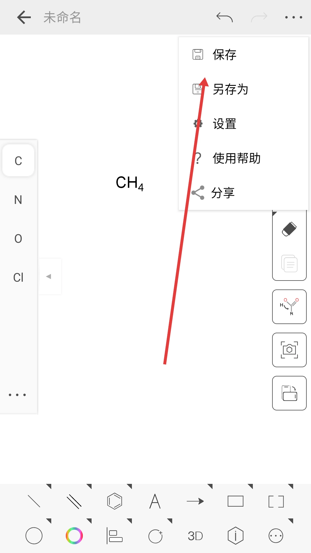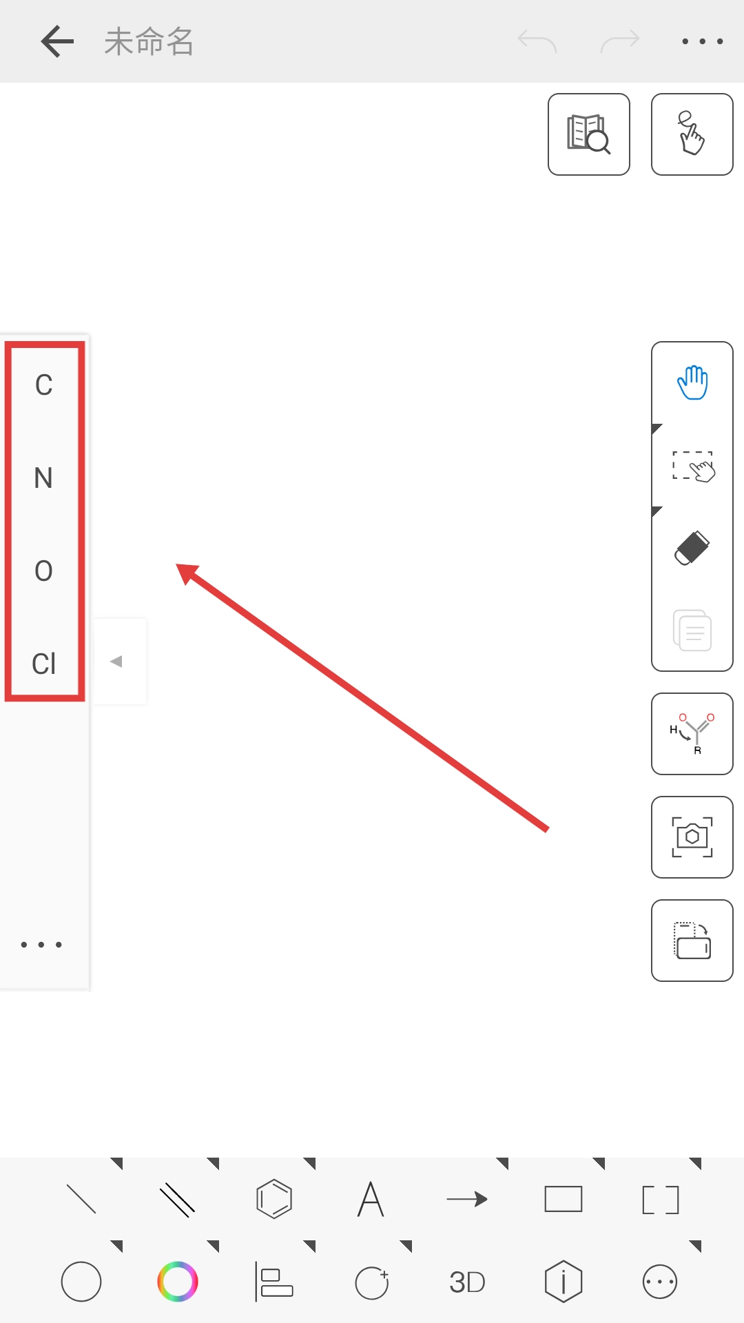2、在编辑页面左侧选择【C】【N】【O】【Cl】等元素,即可着手绘制结构式。