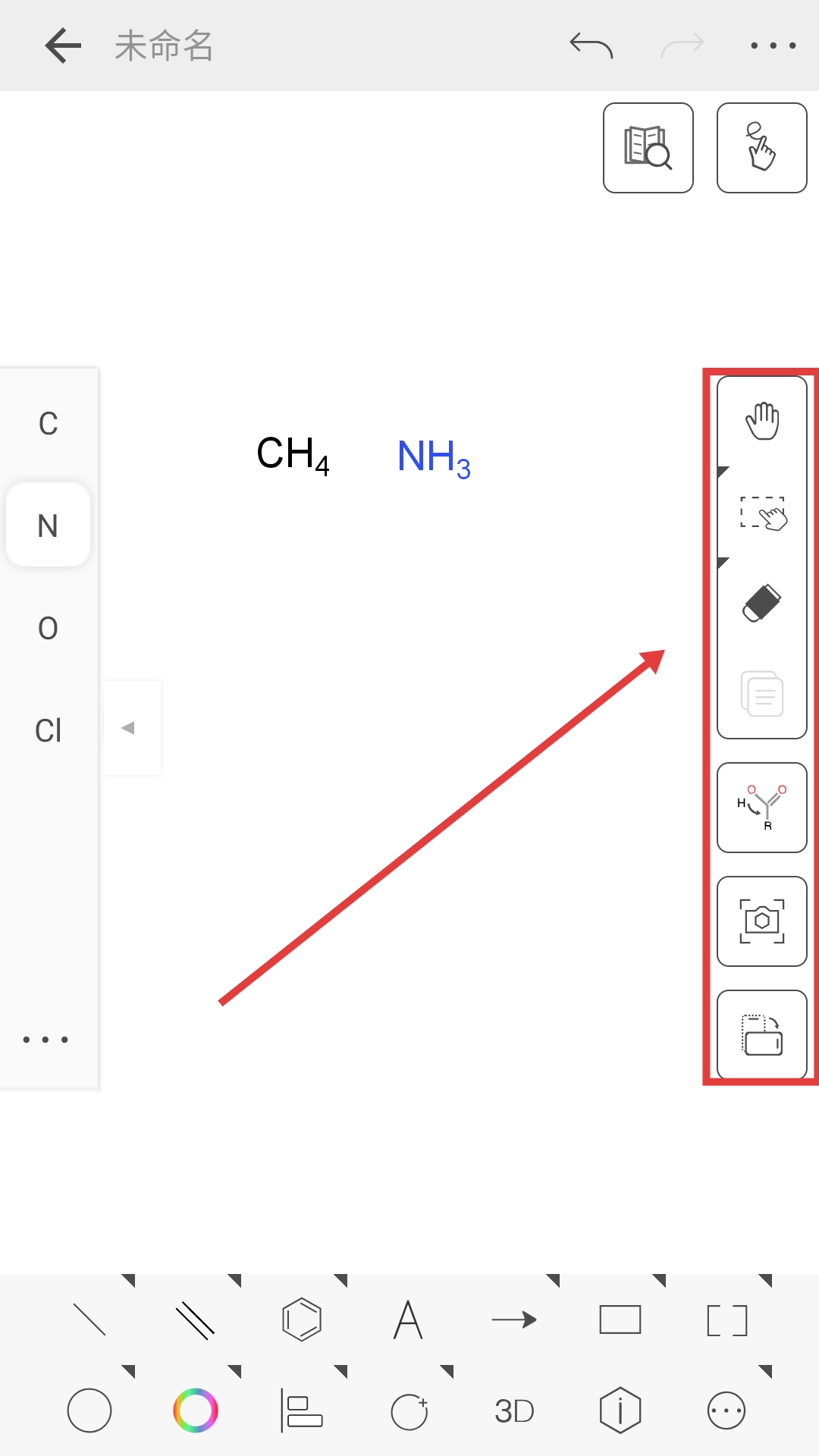 3、借助右侧的工具按钮,可对已绘制的结构式执行移动、选择、擦除等编辑操作。