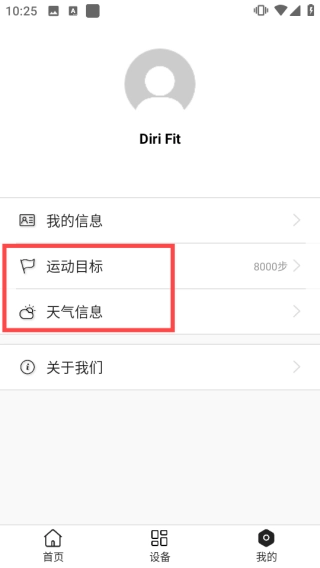 在“我的”页面里,你既能设置运动目标,也可以查看天气情况。