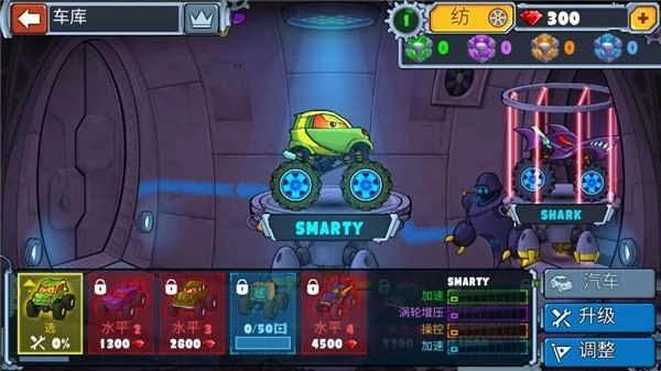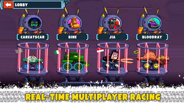 每台赛车都具备独一无二的外观和属性,能够配备导弹、冻结射线、电磁炮这类强力武器,以此提升对抗实力。