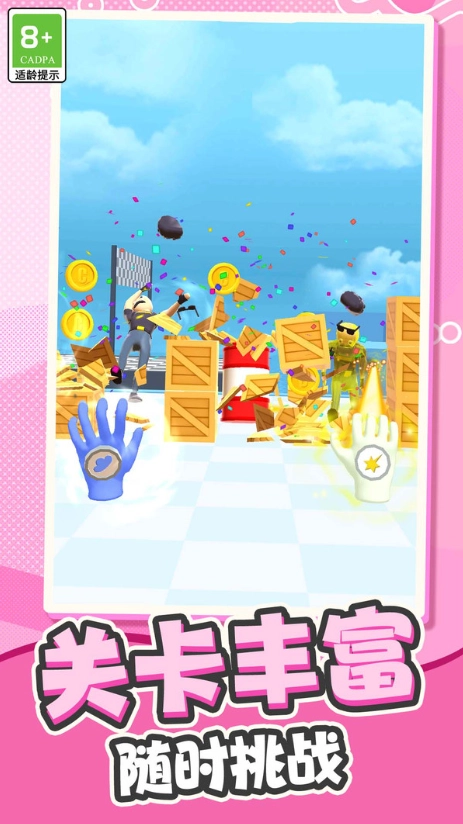 在关卡里能够收集金币和装备,这些资源可以用来解锁以及升级各式各样的技能手套,从而提升攻击力并优化特效呈现效果。