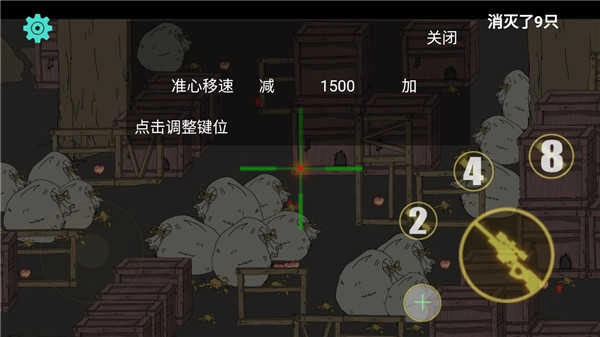 4、游戏目标是瞄准偷粮食的老鼠进行射击,阻止老鼠成功偷走粮食即可获胜。点击设置可调整键位,帮助你更精准地射击。