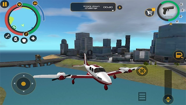 2、游戏界面的左侧用于控制方向,右侧设有多个操作按钮,涵盖攻击、射击、跳跃等功能,点击左上角的按钮即可完成武器更换操作。