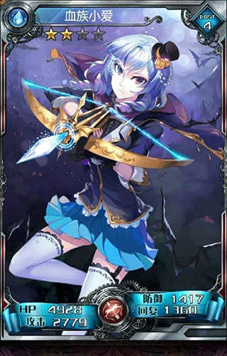 小爱2星初期状态:生命值4928,攻击力2779,防御力1417,回复值1360