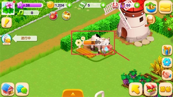 3、在奶牛区域,需等“添加中”的流程结束,以此获取制作牛奶的基础材料,从而不断推动任务里原料准备这一环节的进展。