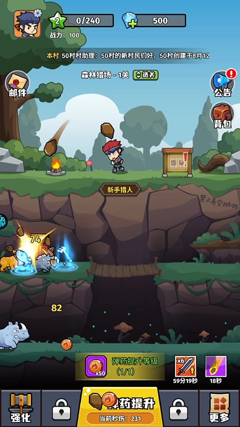开局只有一把刀,所有武器都得靠敲打打造,刚开局就直接送1000把武器,闯关的时候完全没有压力