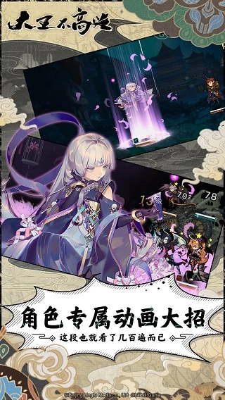 大王不高兴以二次元风格呈现,核心玩法围绕策略回合制展开,结合角色养成、战术对抗以及剧情推进三大要素。整体画风极具张力,不同于常见的“萌系”设定,游戏以新任地府管理者阎小罗为主线,构建出一个阴森神秘的地府世界。场景设计融合传统神话与现代审美,营造出独特的黑色幽默氛围。战斗画面沉浸感十足,不仅毫无违和,还大大增强了对战的观赏性与代入感。作为一款卡牌作品,其角色立绘精细度极高,搭配流畅自然的Live2D动态表现,足以满足广大二次元爱好者的视觉需求。而每个角色释放大招时所采用的传统2D动画形式,更是将视觉效果提升到了一个新的高度,诚意满满。喜欢这类题材的朋友千万不要错过。
