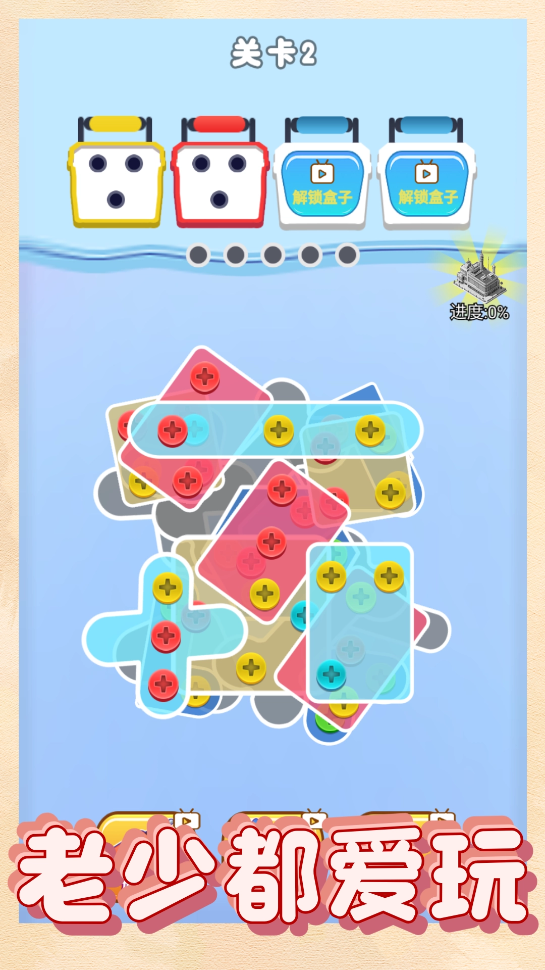 1、注意观察槽位状态,一旦槽位填满就意味着游戏失败;只有将所有螺丝全部消除,才能成功解锁下一关。