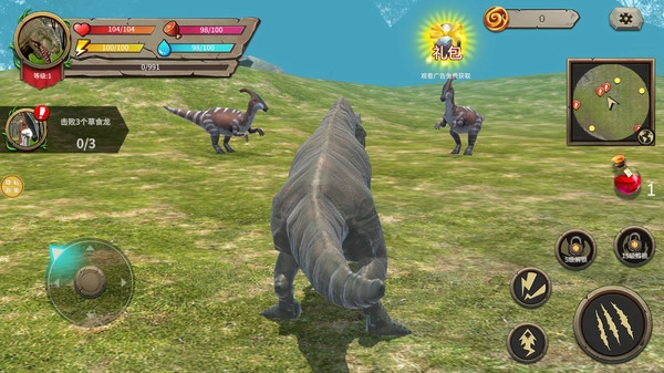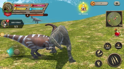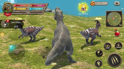 2.界面信息:屏幕左上角会呈现恐龙的血量、体力以及水分值,玩家需要时刻留意这些数值,以此保证恐龙能够在荒野环境里维持稳定的生存状态。